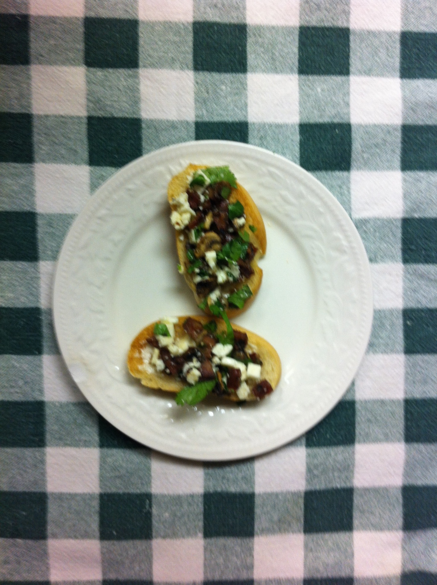 As often happens in my kitchen, I didn’t have the exact ingredients so used the “idea” of the recipe to inspire a new one. Also, as often occurs in Plynn’s cooking world, I just happened to have similar ingredients on hand, plus the meatiness of sausage and mushrooms combined fit what I had in mind for my second course. So here’s how I put it together: