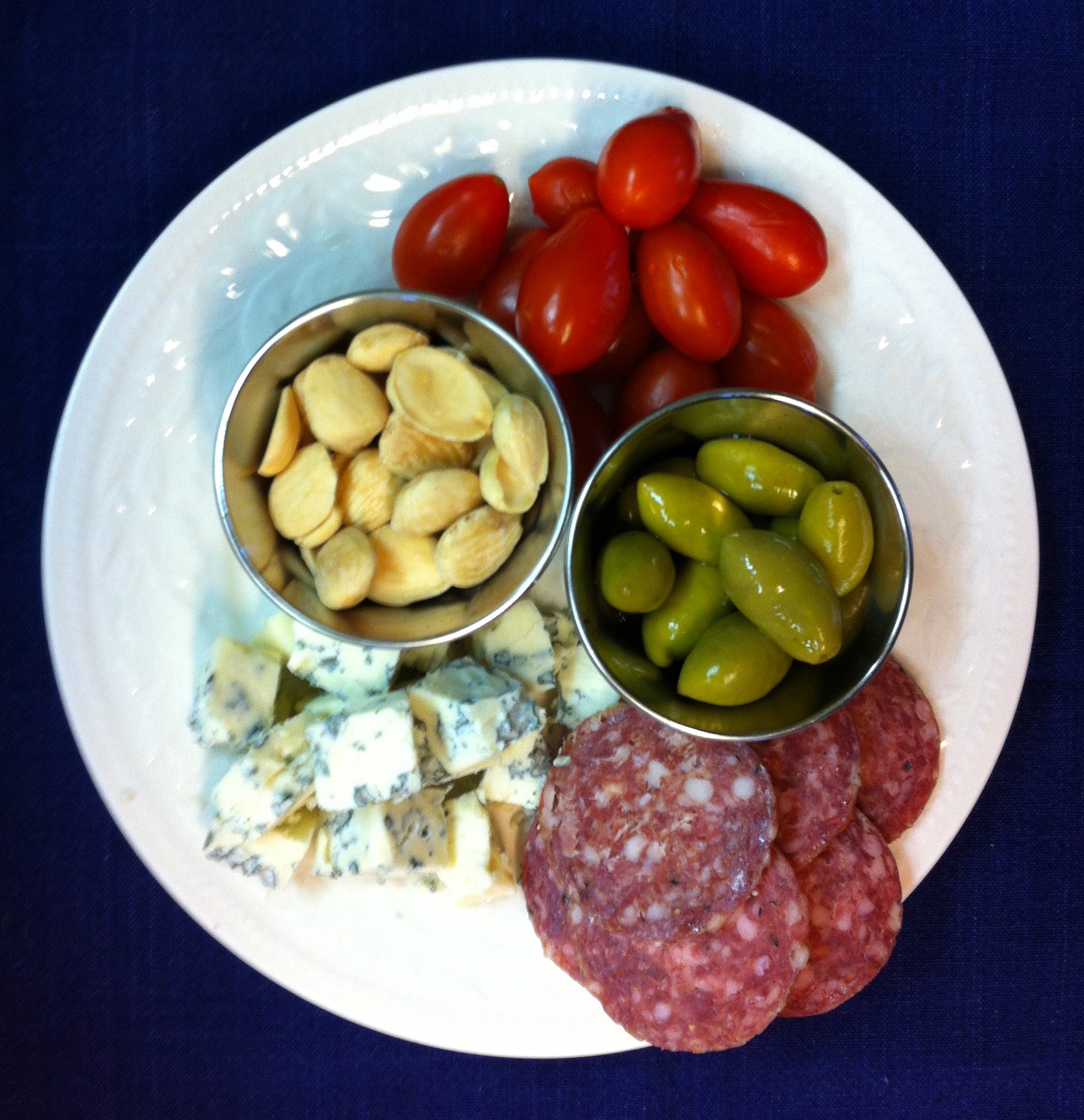 Last night I came up with a fun, quick appetizer – an antipasto plate of a sort. Michael and I weren’t quite ready to have dinner but needed a little nibble to tide us over until the lamb shoulder steaks I was marinating were ready to go on the barbeque.