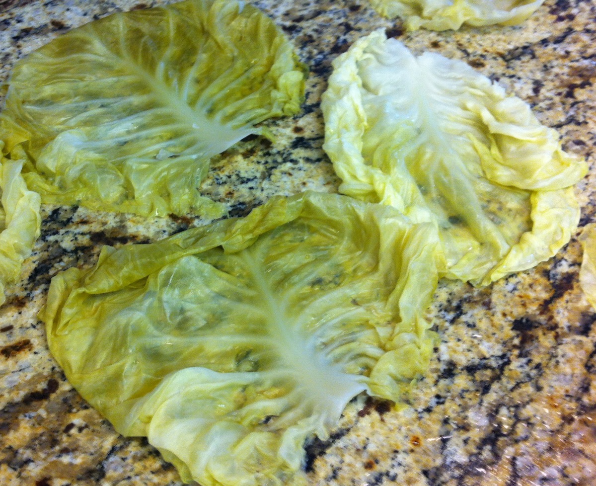 *NOTE: cut the big outer leaves in half to make two rolls. And, the inner core leaves are too small to use for the rolls. Use in soup or slice thinly and sauté with onions and garlic, as a vegetable side dish for another meal.